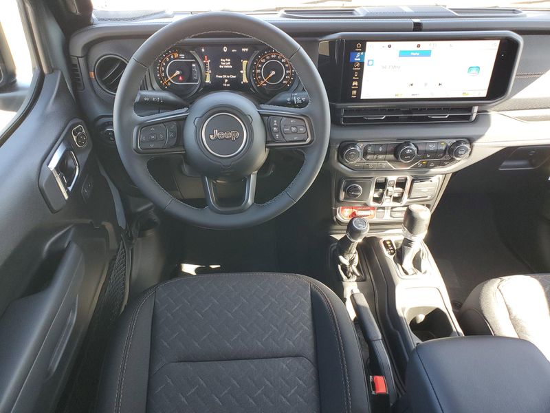 $7,880 off MSRP!Convenience Group (Heated Front Seats, Heated Steering Wheel, Remote Start System, SiriusXM Radio Service, SiriusXM w/360L, and Universal Garage Door Opener), Quick Order Package 24D Mojave, Safety Group (Auto High Beam Headlamp Control, Blind Spot & Cross Path Detection, and ParkSense Rear Park Assist System), 12.3 Touchscreen Display, 4-Wheel Disc Brakes, 4.10 Rear Axle Ratio, 4G LTE Wi-Fi Hot Spot, 8 Speakers, 97 MPH Vehicle Max Speed Calibration, ABS brakes, Air Conditioning, Alexa Built-In, Alloy wheels, AM/FM radio: SiriusXM, Apple CarPlay, Apple CarPlay/Android Auto, Automatic temperature control, Body Color 3-Piece Hard Top, Brake assist, Compass, Connectivity - US/Canada, Delay-off headlights, Driver door bin, Driver vanity mirror, Dual front impact airbags, Dual front side impact airbags, Electronic Stability Control, Emergency communication system: Jeep Connect, Freedom Panel Storage Bag, Front anti-roll bar, Front Bucket Seats, Front Center Armrest w/Storage, Front dual zone A/C, Front fog lights, Front reading lights, Fully automatic headlights, Google Android Auto, Heated door mirrors, Heavy Duty Suspension w/Gas Shocks, Illuminated entry, Integrated roll-over protection, Low tire pressure warning, No Soft Top, Occupant sensing airbag, Outside temperature display, Overhead airbag, Panic alarm, Passenger door bin, Passenger vanity mirror, Power door mirrors, Power steering, Power windows, Premium Cloth Seats w/Sport Bolsters, Radio data system, Radio: Uconnect 5 w/12.3 Display, Rear anti-roll bar, Rear reading lights, Rear Sliding Window, Rear Window Defroster, Remote keyless entry, Security system, Speed control, Split folding rear seat, Steering wheel mounted audio controls, Tachometer, Telescoping steering wheel, Tilt steering wheel, Traction control, Trip computer, USB Host Flip, Variably intermittent wipers, Voltmeter, and Wheels: 17 x 7.5 Dark Gray Painted.To see more quality vehicles like this one, visit https://www.jcofontario.com or call (909) 906-0852. All prices are subject to government taxes and fees, any finance charges, $85 dealer documentation fee, and any emission testing charge. Sale prices do not include dealer installed accessories which can be purchased for an additional cost. If shipping is required, dealership must facilitate, no exceptions.2025 Jeep Gladiator Mojave 3.6L V6 24V VVT Price includes: $5500 - 2025 National Bonus Cash . Exp. 11/03/2025