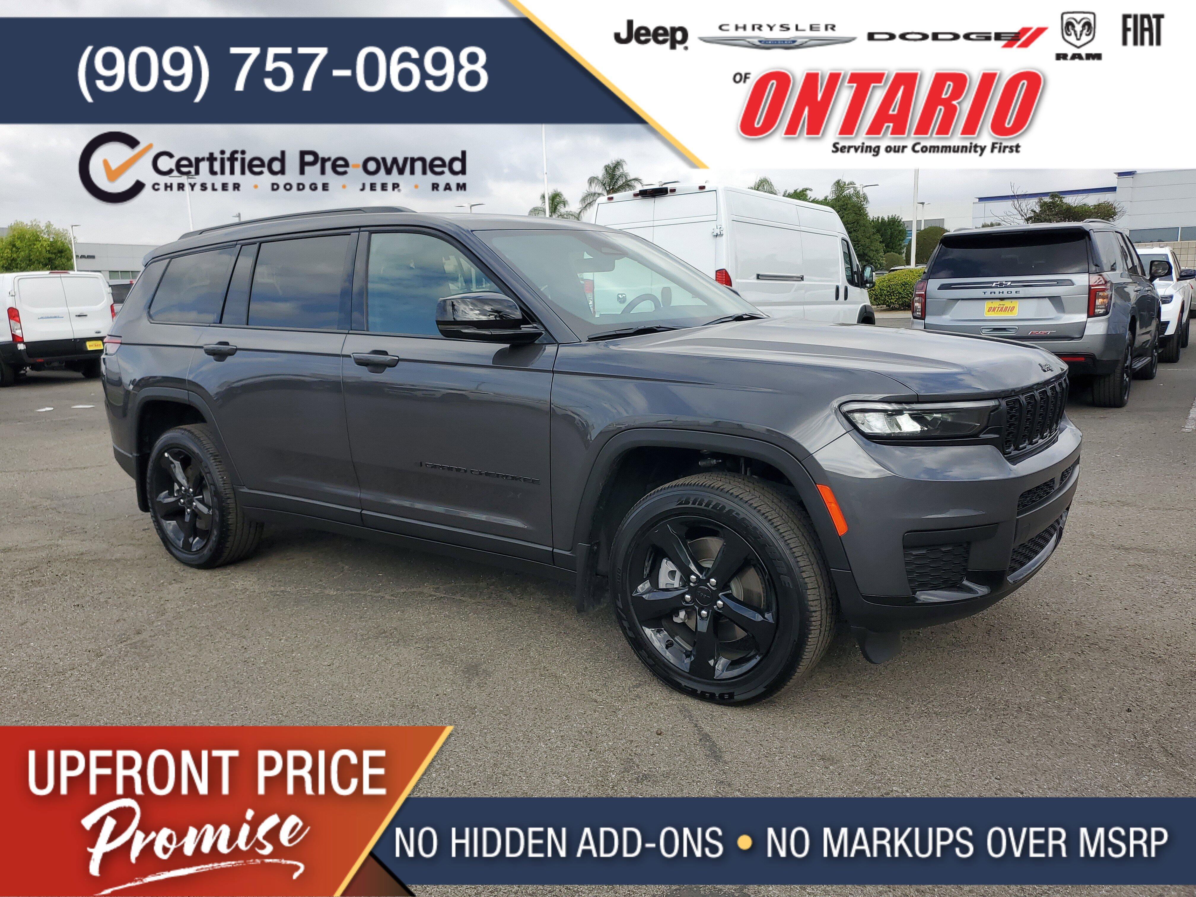 ** FALL INTO SAVINGS SALES EVENT ** GOING ON NOW!** JEEP CERTIFIED **, ** NON SMOKER **, ** FRESHLY DETAILED **, ** BACK UP CAMERA **, ** BLUETOOTH WIRELESS / HANDS FREE **, ** APPLE CAR PLAY **, ** PUSH BUTTON IGNITION **, ** KEYLESS ENTRY **, ** 3RD ROW SEATS **, ** ONE OWNER CARFAX **.Certified.FCA US LLC Certified Pre-Owned Details:* Roadside Assistance* Warranty Deductible: $100* Vehicle History* Transferable Warranty* Vehicles Up to 75,000 Miles and/or 5 Model Years. 24-Hour Towing & Roadside Assistance, Car Rental Allowance, CARFAX Vehicle History ReportTM and an Introductory 3-month Subscription to SiriusXM Satellite Radio & Certified Warranty Upgrades* Powertrain Limited Warranty: 84 Month/100,000 Mile (whichever comes first) from original in-service date* Limited Warranty: 3 Month/3,000 Mile (whichever comes first) after new car warranty expires or from certified purchase date* 125 Point InspectionClean CARFAX.CARFAX One-Owner.To see more quality vehicles like this one right here just click https://www.jcdfontario.com or dial (909) 906-0852. All prices subject to government fees and taxes, any finance charges, $85 dealer doc fee, and any emission testing charge. Sale prices do not include dealer installed accessories which can be purchased for an additional cost. If shipping is required, dealership must facilitate, no exceptions. This vehicle MAY have the following features. Please inspect vehicle BEFORE purchasing to ensure feature accuracy. MOPAR Finishing Package (MOPAR Front Splash Guards, MOPAR Paint Protection Film, and MOPAR Rear Splash Guards w/Jeep Logo), Quick Order Package 23M Altitude X (115V Auxiliary Power Outlet, 3rd Row Charge-Only USB Ports, Altitude X, Black Headliner, Capri Leatherette/Suede Seats, Delete Laredo Badge, Gloss Black Exterior Accents, Heated Front Seats, Heated Steering Wheel, Power Liftgate, Power Sunroof, Rain Sensitive Windshield Wipers, Remote Start System, Selectable Tire Fill Alert, Wheels: 18 x 8.0 Fully Painted Aluminum 1, and Wireless Charging Pad), FCA US LLC Certified Pre-Owned Certified, 3.45 Rear Axle Ratio, 3rd row seats: split-bench, 4-Wheel Disc Brakes, 6 Speakers, ABS brakes, Air Conditioning, Alloy wheels, AM/FM radio: SiriusXM, Anti-whiplash front head restraints, Automatic temperature control, Brake assist, Bumpers: body-color, Cloth Seats, Compass, Delay-off headlights, Driver door bin, Driver vanity mirror, Dual front impact airbags, Dual front side impact airbags, Electronic Stability Control, Emergency communication system, Four wheel independent suspension, Front anti-roll bar, Front Bucket Seats, Front Center Armrest w/Storage, Front dual zone A/C, Front License Plate Bracket, Front reading lights, Fully automatic headlights, Heated door mirrors, Illuminated entry, Knee airbag, Low tire pressure warning, Manual Fold Seatbacks, Model Year Tracking, Normal Duty Suspension, Occupant sensing airbag, Outside temperature display, Overhead airbag, Overhead console, Panic alarm, ParkView Rear Back-Up Camera, Passenger door bin, Passenger vanity mirror, Power door mirrors, Power driver seat, Power steering, Power windows, Radio data system, Radio: Uconnect 5 w/8.4 Display, Rear air conditioning, Rear anti-roll bar, Rear reading lights, Rear window defroster, Rear window wiper, Reclining 3rd row seat, Remote keyless entry, Security system, Speed control, Speed-Sensitive Wipers, Split folding rear seat, Spoiler, Steering wheel mounted audio controls, Tachometer, Telescoping steering wheel, Tilt steering wheel, Traction control, Trip computer, Variably intermittent wipers, Voltmeter, Wheels: 18 x 8.0 Fully Painted Aluminum, and Wheels: 20 x 8.5 Gloss Black Painted AluminuM.