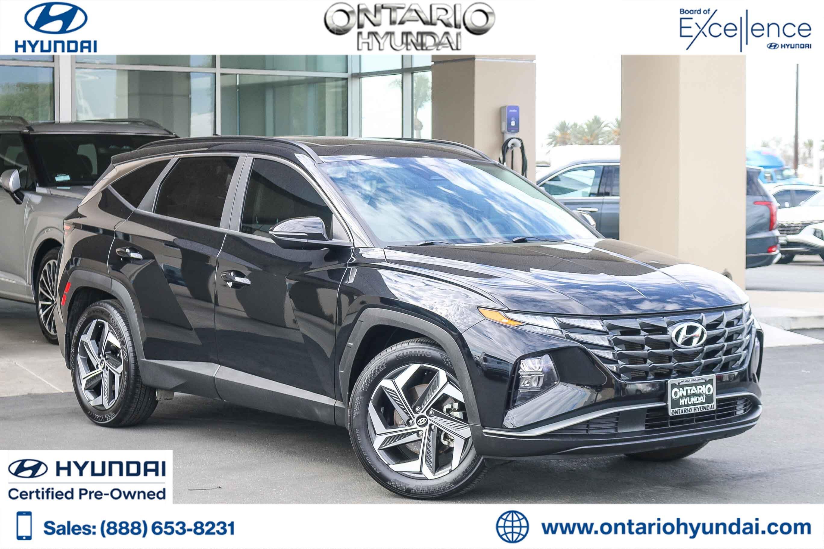 CARFAX One-Owner. Clean CARFAX. Certified. Phantom Black 2023 Hyundai Tucson SEL FWD 8-Speed Automatic with SHIFTRONIC 2.5L I4 DGI DOHC 16V LEV3-ULEV70 187hpRecent Arrival! Odometer is 1503 miles below market average! 25/32 City/Highway MPGHyundai Details:* 173+ Point Inspection (for Hyundai Certified Used Vehicles program), 117 Point Inspection (for Hyundai Select Used program)* Includes 10-year/Unlimited Mileage Roadside Assistance with Rental Car and Trip Interruption Reimbursement; Please See Dealers for Specific Vehicle Eligibility Requirements. 10-Year/100,000 Mile Hybrid/EV Battery Warranty. 3-Months SiriusXM Trial Subscription. Complimentary 1 Year (Connected Care & Remote Pkgs). (for Hyundai Certified Used Vehicles program), 6 Model Years Old and Newer With 80,000 - 120,000 Miles, 7-10 Model Years Old Vehicles With 120,000 Miles or Less. Powertrain Warranty 90 Days/5,000 Miles, HEV/PHEV Battery Warranty 10 Years/100,000 Miles. Roadside Assistance 90 Days/Unlimited Miles. Rental Car $35/Day Up to 5 Days. 3-Months SiriusXM Trial Subscription. (for Hyundai Select Used program)* Warranty Deductible: $50 (for Hyundai Certified Used Vehicles program)* Roadside Assistance (for Hyundai Certified Used Vehicles program)* Vehicle History (for Hyundai Certified Used Vehicles program)* Limited Warranty: 60 Month/60,000 Mile (whichever comes first) from original in-service date (for Hyundai Certified Used Vehicles program)* Powertrain Limited Warranty: 120 Month/100,000 Mile (whichever comes first) from original in-service date (for Hyundai Certified Used Vehicles program)Thank you for choosing Ontario Hyundai. If you need additional photos or videos of the vehicle, please contact us. Ontario Hyundai is proud to serve Anaheim, Riverside, West Covina, San Bernardino, Corona, Orange County, Fontana, Rancho Cucamonga, Eastvale, Chino, and the Inland Empire.