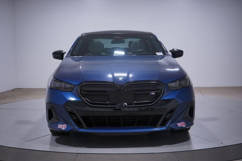 2024 Blue Metallic 4D Sedan BMW Curved Display w/HUD, BMW Iconic Glow Kidney Grille, Extended Shadowline Trim, Full LED Lights w/Cornering Lights, Heated Front Seats, Heated Steering Wheel, Interior Camera, M Shadowline Lights, M Sport Brakes w/Red Calipers, M Sport Package Pro, M Sport Pro Contents, M Sport Professional Package, Natural Interaction, Parking Assistant Plus, Premium Content 1, Premium Package, Rear Spoiler, Wheels: 20'' x 8.5'' Fr & 20'' x 10'' Rr Black Grey. BMW i5 M60 AWD Single-Speed Automatic Electric Motor